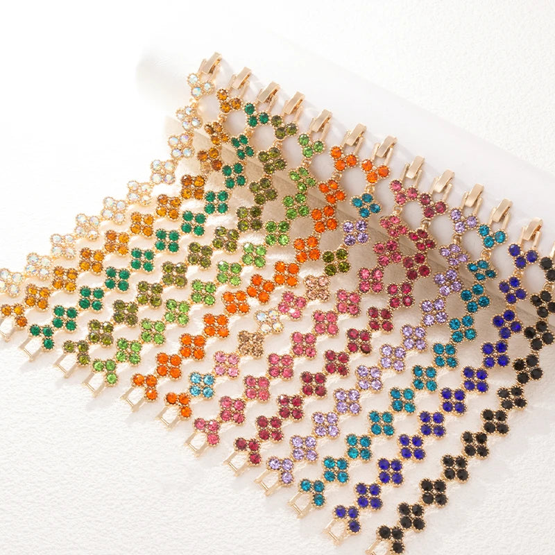 Elevate your elegance with this Sparkling Rhinestone Four Leaf Clover Hand Bracelet, designed specifically for women who appreciate refined beauty. Featuring delicately arranged rhinestones that catch the light with every movement, this bracelet combines timeless charm with a symbol of good fortune. Its intricate four-leaf clover design adds a subtle yet striking detail, making it perfect for both everyday wear and special occasions. Crafted to complement your style effortlessly, this piece enhances your wrist with a graceful sparkle that exudes sophistication and luck.